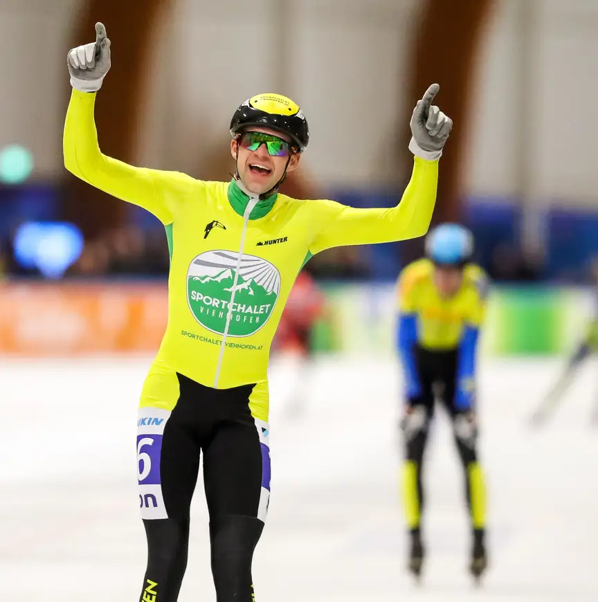 Op het snelle ijs van Leeuwarden werd de wedstrijd over honderd ronden gaandeweg een afvalkoers. Halverwege de koers wisten Max van Honschoten, Igor Baars en Leander van der Geest een ronde voorsprong te pakken. "Het was heel de tijd chaos en vanaf het begin ging het hard. Ik dacht na tien ronden al: het wordt lood- en loodzwaar", vertelt Van der Geest. "Op een gegeven moment zag ik er één wegrijden en dacht: nu moet ik gaan. Het was alles of niks…"