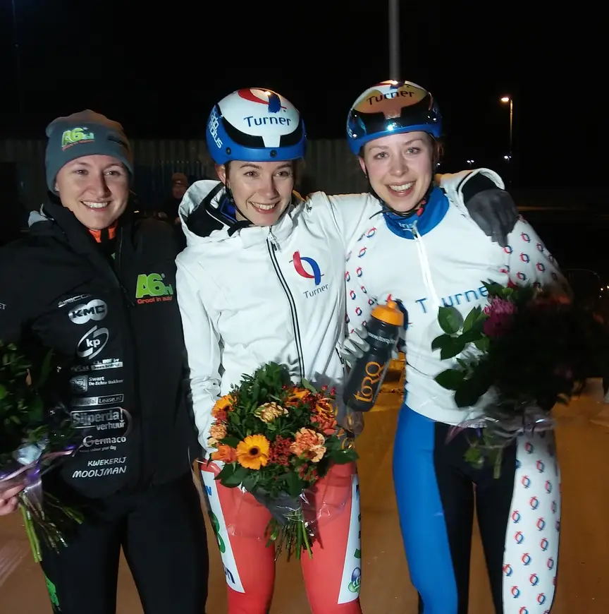 Bij de wedstrijd op het semi-natuurijs in de Flevopolder stonden 50 dames aan de start. Op het ribbelige en natte maar goed glijdende ijs ontstond een kopgroep van zes met naast de uiteindelijke podiumklanten ook Lianne Burger, Beau Wagemaker en Dieuwertje van Kalken. Bij de Masters 40+ ging de zege in de eindsprint van een kopgroep van vijf naar Arnold Gaasenbeek uit Maarssen. Jan van Breugel (Woudrichem) won bij de Masters 55+.