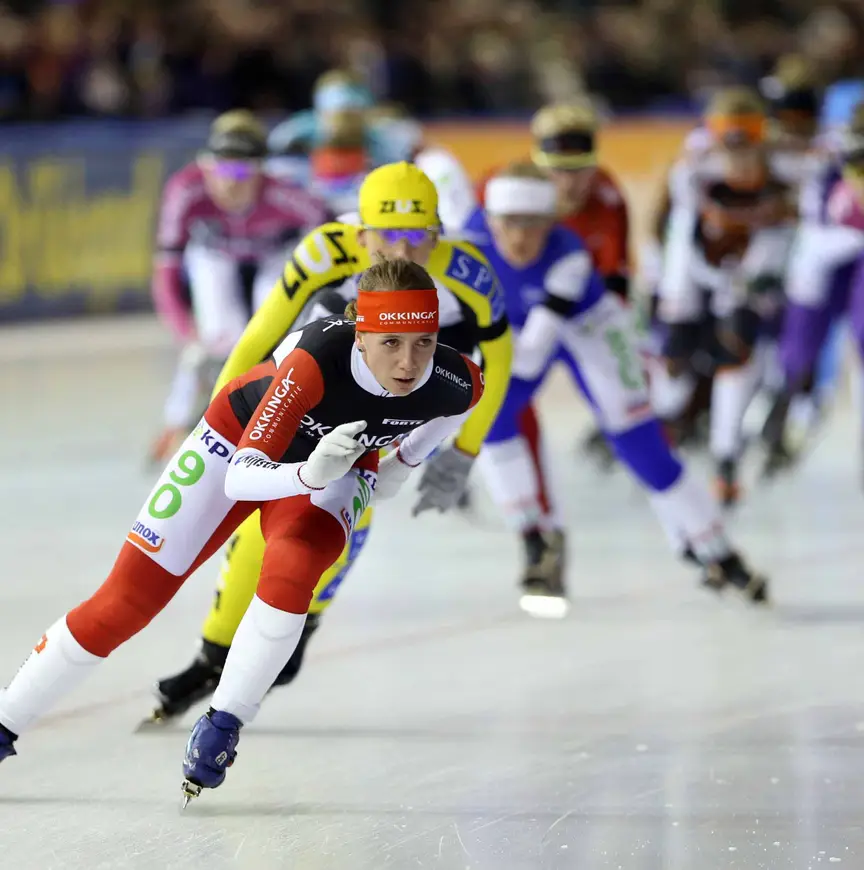 Misschien was Van der Wal in Dronten juist wel meer vastbesloten dan ooit om winnend van het ijs te stappen. In de snelle wedstrijd – uiteraard zonder Mariska Huisman - waakte ze er steeds voor de slag niet te missen. Van de valpartij in de slotrondes van concurrentes Irene Schouten en Janneke Ensing kreeg ze niets mee. "Juist omdat ik niets wilde missen, zat ik helemaal van voren. Soms is dat nadelig, nu niet. Maar daardoor heb ik wel die hele valpartij gemist."