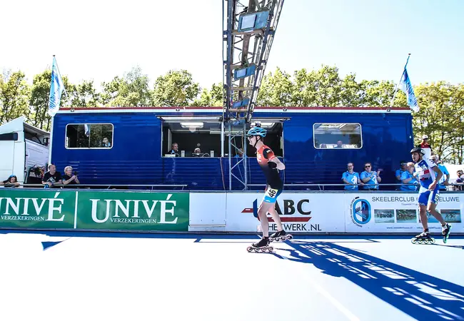 Want verliezen, dat deed het Italiaanse team. Alsof hij werd afgevuurd snelde Van Workum in de finale vanuit derde positie langs twee Italianen. "Het ging voor mijn gevoel eigenlijk best makkelijk; overal een beetje tussendoor skeeleren. Ik was nog niet helemaal kapot en het laatste rondje dacht ik: nu moet alles eruit." Waar hij tijdens de Europa Cup in Geisingen de Italianen nog voor zich moest laten, speelde Van Workum het in Heerde dus wel klaar. Met twee armen in de lucht en een kleine oerkreet snelde hij als eerste over de finishlijn, gevolgd door Palumbo en Gatti. Visser werd vijfde.