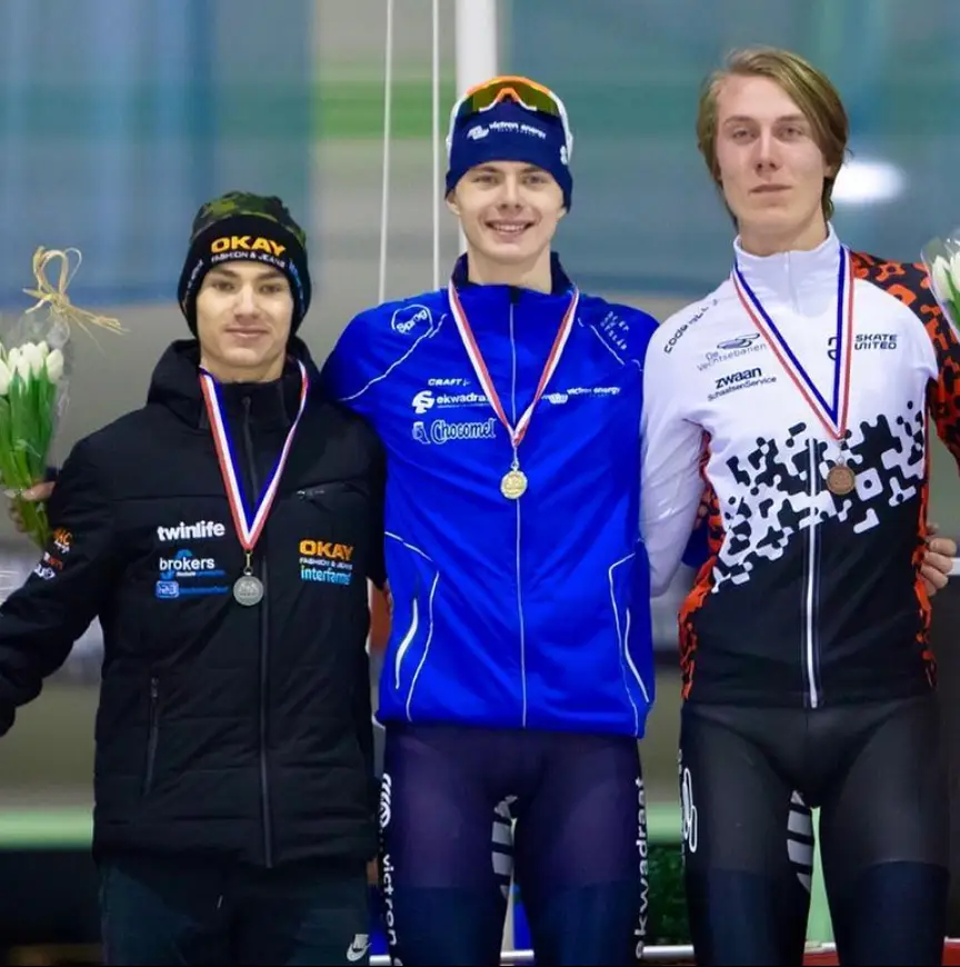 Op IJsbaan Twente noteerde Jordy van Workum een persoonlijk record van 3.52,12 en bleef daarmee voor Yves Vergeer, die al in de eerste rit in actie kwam en ook zijn beste tijd ooit neerzette (3.53,64). Teun de Wit pakte brons in een tijd van 3.59,97. Na zijn nationale titel bij de B-junioren vorig jaar pakte Van Workum dus ook het goud bij de junioren A. Net zo makkelijk, toch? "Je moet het toch maar doen", lacht hij. "Dit is weer anders dan skeeleren. Ik hoef niet echt te schakelen, maar dan rijdt je man tegen man en hier tegen de tijd", doelt Van Workum op zijn succesvolle zomer waarin hij onder andere de wereldtitel veroverde op de afvalkoers.