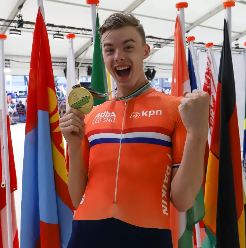 Dan nog even naar de race. Met Oranje-ploegmaat Teun de Wit reed Jordy een ijzersterke finale. Met nog tien ronden te gaan veroorzaakte de Belg Jason Suttels een valpartij, die het Nederlandse duo net kon ontwijken. Zo bleven ze samen over voor de slotsprint van vijf man. De Wit haakte als eerste af, maar Jordy bleek oppermachtig en kwam als eerste over de streep. "Ik voelde me zo goed, ik kon maar blijven gaan. De Colombiaan duwde me in de laatste bocht nog naar buiten toe, maar ik kon er toch nog overheen komen."