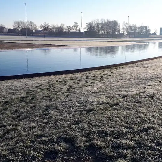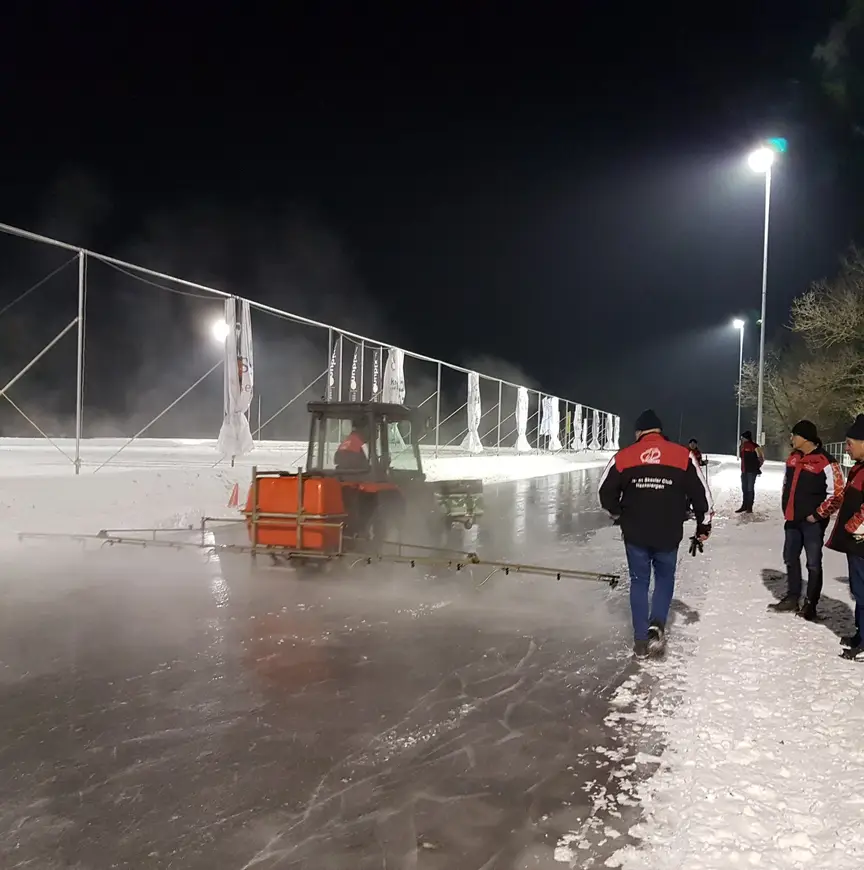 “Er lag een traditionele ijsbaan waar we elke winter negentig centimeter water op lieten lopen”, legt Provily uit. “Gezien de klimaatsverandering en het daardoor ontbreken van dikke winters grepen we de kans aan toen we konden overstappen op een asfalt-ondergrond. Die is afgeslepen en zo gladder geworden. We merkten al snel dat we na twee nachten van goede vorst een ijslaag hadden van drie of vier centimeter. Wij opereren anders dan onze concurrenten, want we hoeven niet de hele nacht water te sproeien. De faciliteiten die we hier hebben, gaven vervolgens de doorslag om ons aan te melden bij de KNSB.”