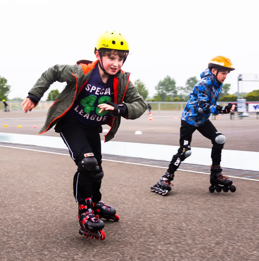 Of je nou op de openbare weg skeelert, in de achtertuin of op de parkeerplaats, bij het skaten is het van groot belang dat je een helm draagt. Juist ook als je niet zo hard gaat! Net als bij wielrennen ontstaan de vervelendste blessures vaak als je bijna stilstaat. Een klap komt dan meestal harder aan en je ligt meteen stil. Als skater ben je kwetsbaar op de weg. Je bent altijd afhankelijk van de ondergrond en het overige verkeer. Het dragen van een helm maakt de kans op hoofdletsel bij een valpartij stukken kleiner. Om die reden is bij wedstrijden, toertochten en clinics van de KNSB het dragen van een helm verplicht.