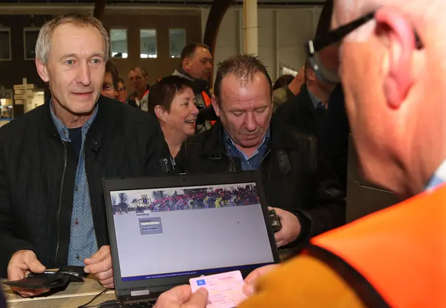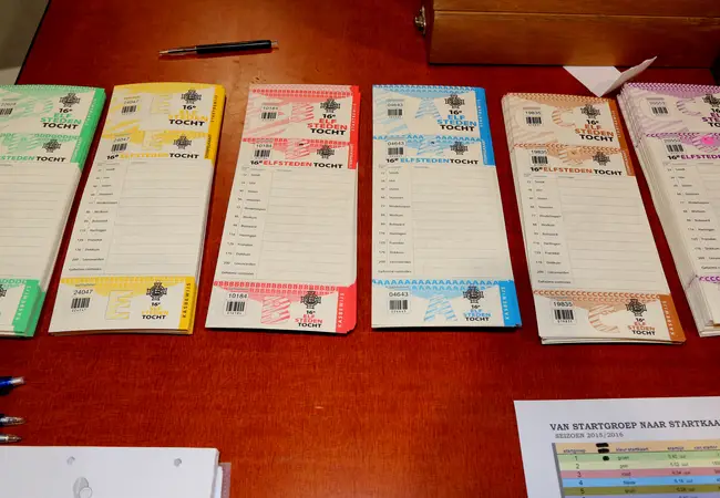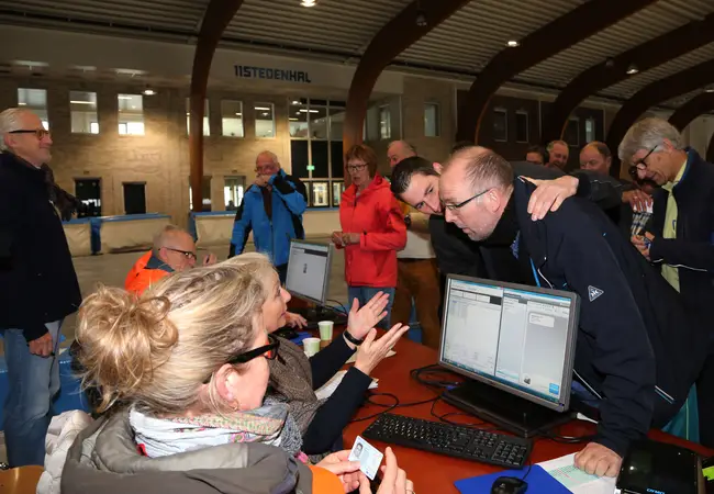 "Het is de eerste keer sinds de laatste Elfstedentocht dat we dit oefenen", vertelt Wiebe Wieling, voorzitter van de Koninklijke Vereniging De Friesche Elf Steden. Waar de inschrijvingen in '97 nog geduldig met de hand werden behandeld, is er nu een geautomatiseerd systeem waarmee deelnemers zich een dag van tevoren zelf online kunnen aanmelden. "Alles is hier dan met één klik op het scherm te zien. Of iemand heeft betaald, of iemand zijn ID klopt en of iemand dus geldig lid is."
