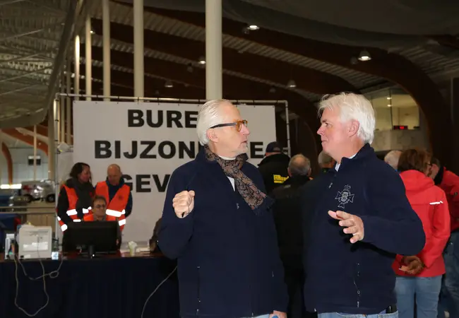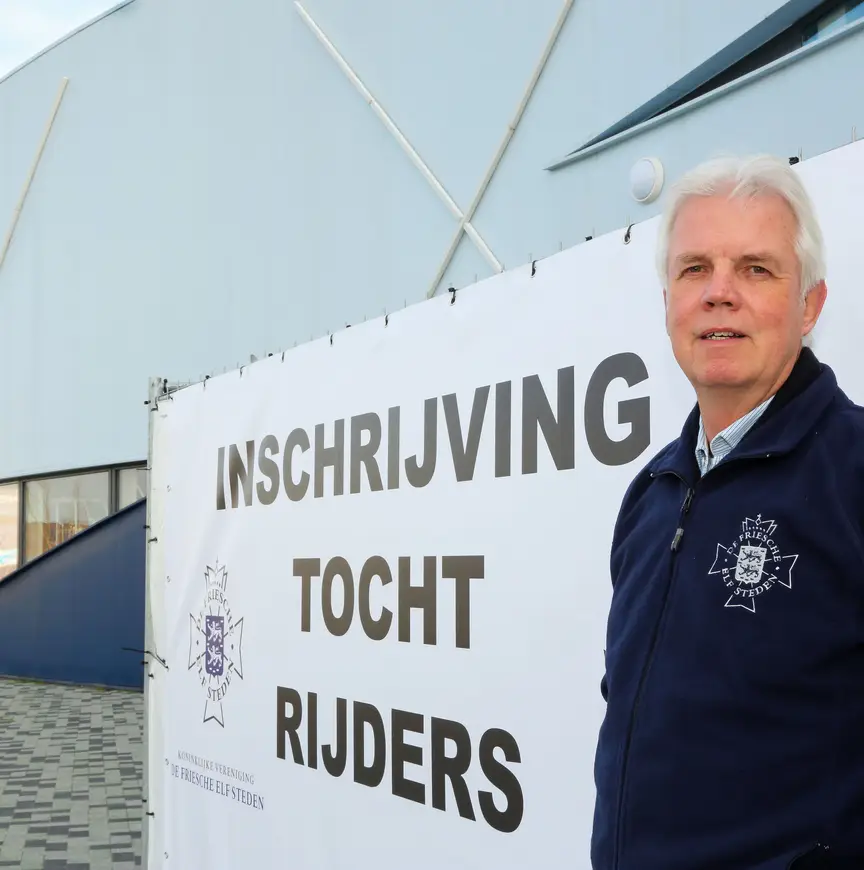 Harry van der Werf en Jan de Vries staan samen in de rij voor een nieuw startbewijs in oefenronde drie. Van der Werf is al achttien jaar wedstrijdleider bij de Elfstedentocht, en maakte hem met zijn vertrek komend seizoen dus nooit in functie mee. "Dat is zuur, maar met zeventig jaar moet je eruit", luidt het. Tevreden kijkt hij naar de grote groep test-aanmelders. "We hebben dit al zo vaak besproken dat ik het natuurlijk kan dromen", lacht hij. De wedstrijdrijders melden zich aan in een andere ruimte dan het 'normale' elfstedenvolk. "Maar verder komt het eigenlijk op hetzelfde neer. We willen alleen proberen om selfie-toestanden te voorkomen."
