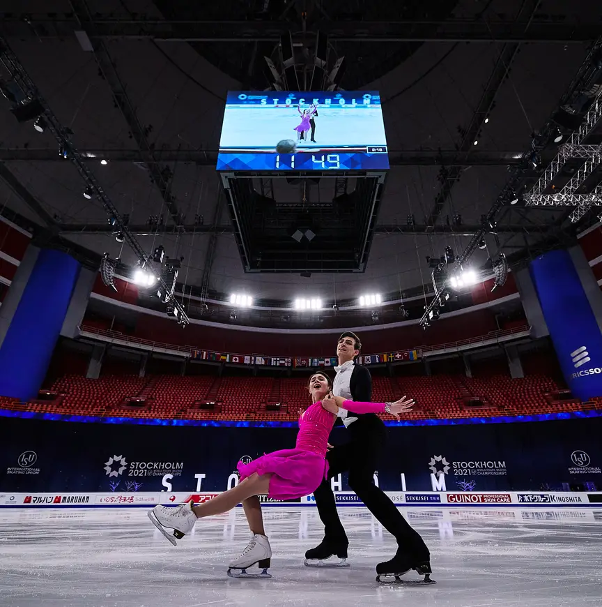 Hoewel er geen publiek is toegestaan in de Ericcson Globe zijn de tribunes wel gevuld met andere schaatsers die komen kijken, zoals Lindsay van Zundert die vanavond haar vrije kür rijdt. Zo ontvangen Verhaegh en Van Geffen toch applaus na afloop van hun debuut. "Er zaten nog niet zoveel mensen, dat zal straks wel komen. Maar wij waren toch door het dolle heen, dus elk applaus telt voor twintig", lacht Van Geffen. "Ik zag op gegeven moment een bewegende camera laag op het ijs hangen", vertelt Verhaegh. "Toen we begonnen was die nog ver weg, maar ineens kwam de camera dichtbij en dacht ik: oh jeetje. Ik was mij ervan bewust dat er online een groot publiek meekijkt."