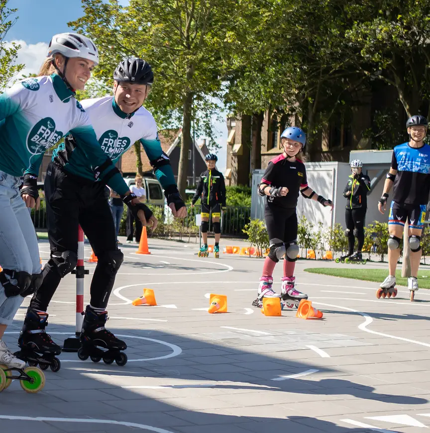 Schouten nam ook Kalvijn onder handen. In een rechtstreeks duel op een uitgezet hindernisparcours liet ze haar tegenstander alle hoeken van het schoolplein zien. De topschaatsster van marathonploeg FriesBlond zag echter ook vlagen van talent bij Kalvijn. “Met wat oefening kan het best nog wat worden!” Dat was de YouTuber met haar eens: “Het is jaren geleden dat ik geskatet heb, maar in de winter heb ik wel nog geschaatst.”