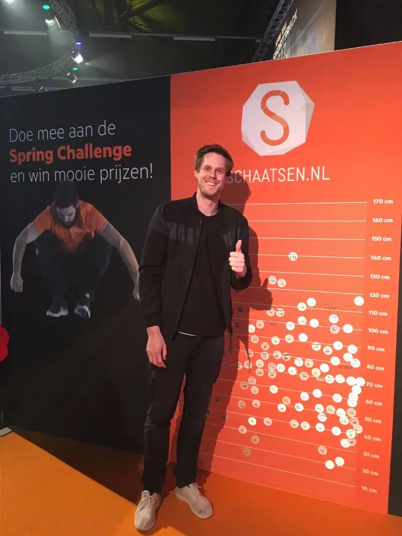 Overigens was de sprong van Blokhuijsen niet de allerhoogste van de dag. Die eer ging naar oud-schaatser Marco Lubbers, die 1.37 meter liet noteren.