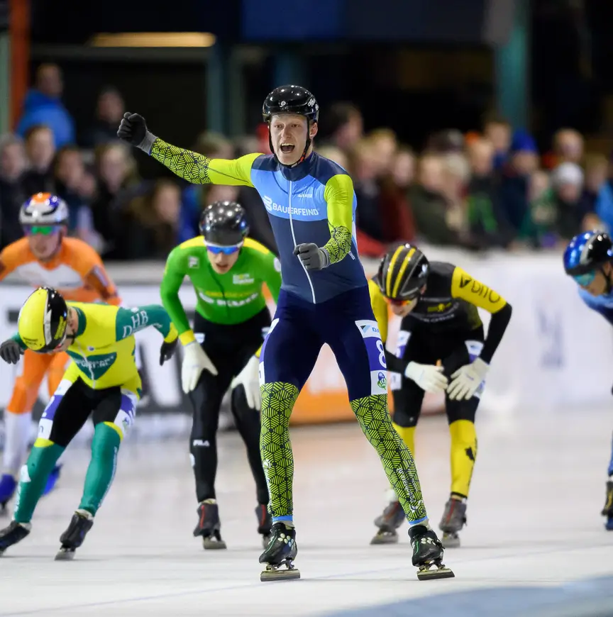 Bij de beloften mannen lag de wedstrijd over zestig ronden na meerdere uitlooppogingen op koers voor een massasprint. Met zeven ronden te gaan zorgde een valpartij echter voor een iets andere wending. Casper Zuurveld ging onderuit op het rechte stuk voor de finish en bleef liggen. De wedstrijd werd geneutraliseerd en terwijl het peloton langzaam voorbij reed, kon Zuurveld het ijs zelf verlaten. Er volgde een herstart met tien ronden op het bord.