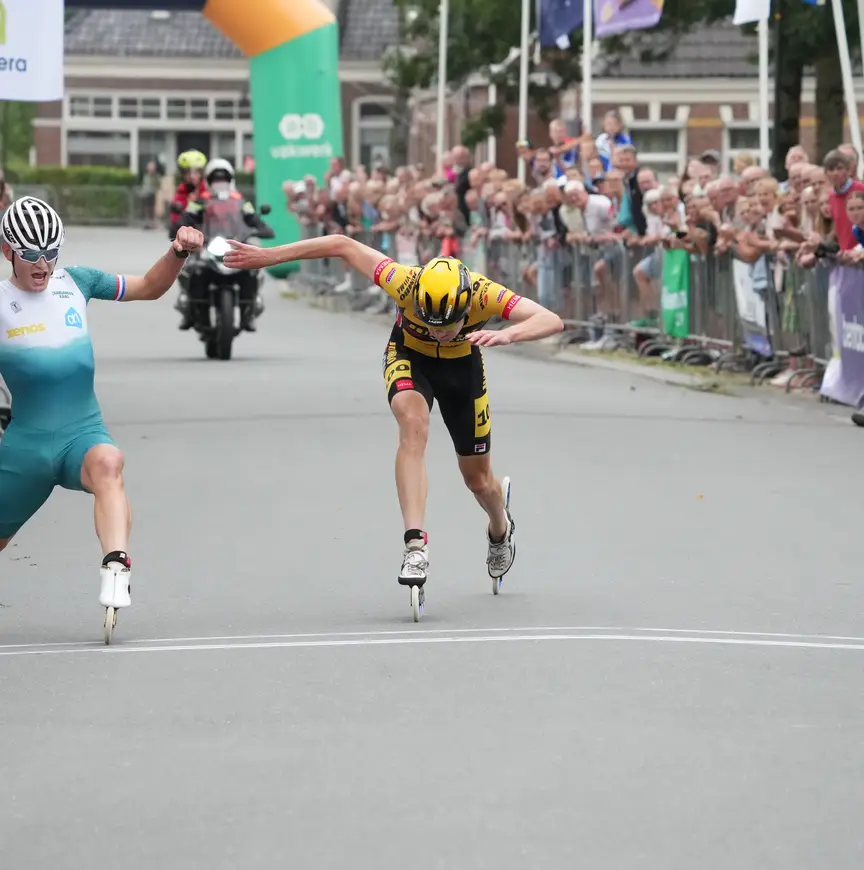En toch: Harink stak zijn wiel 55 duizendsten eerder over de streep dan Post. “Vaak als ik hier aan de start stond, had ik het gevoel: shit man, ik ben niet goed genoeg.” Nu kwam de rijder van Albert Heijn Zaanlander zonder verwachtingen naar het noorden van Friesland, waar hij ook nog eens de enige vertegenwoordiger van zijn ploeg was. “En dan win je ineens”, lacht Harink.
