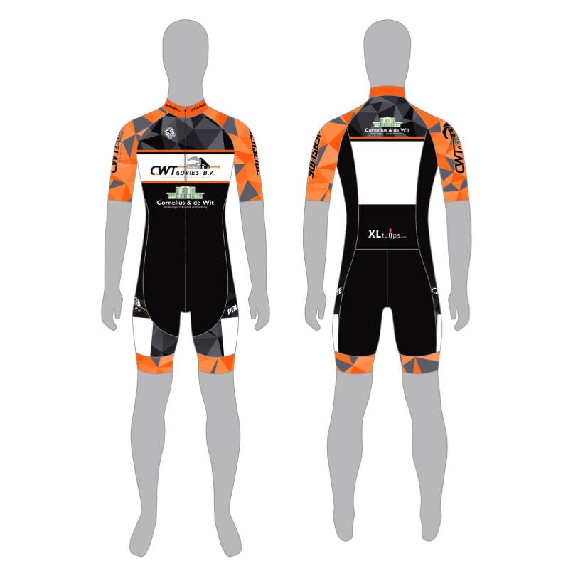 In afwachting van nieuwe kleding reden de dames afgelopen weekend in de roze pakken van XL Tulips. Die sponsor zal ook op de nieuwe kleding te zien zijn. Het oranje en zwarte pak heeft eenzelfde ontwerp als dat van marathonploeg Smit Consultancy. Niet geheel toevallig zijn die kleuren ook de huiskleuren van CWT Advies, een bedrijf in de logistieke dienstverlening met vestigingen in Hoorn en Oldebroek. Naast CWT Advies zorgt Powerslide voor de nodige materialen.