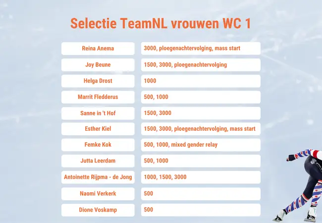 Het is afwachten wat de Nederlanders waard zijn in het internationale veld. De seizoenstijden van dit jaar lichten een tipje van de sluier op, al verschillen de omstandigheden waarin de kwalificatiewedstrijden gereden zijn. Op alle afstanden prijkt een Nederlandse vrouw bovenaan de seizoenranglijst. Bij afwezigheid van Marijke Groenewoud en Irene Schouten verschijnen van die namen alleen Femke Kok en Jutta Leerdam op het ijs van de Meiji Hokkaido – Tokachi Oval.