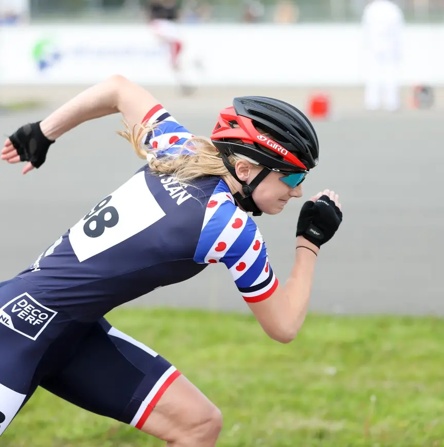 "Voor mij is dit precies kort genoeg, want de bochten lopen nog niet zo heel soepel. Ik ben snel op snelheid, maar houd het meestal niet zo heel lang vol. Dus dit is voor mij heel mooi. Ik heb een keer eerder een landelijke baan gewonnen, dus dat ik nu weer eens win is best wel bijzonder. Het is wel jammer dat er geen knock-outsysteem is, maar dit is ook prima."
