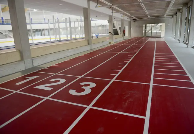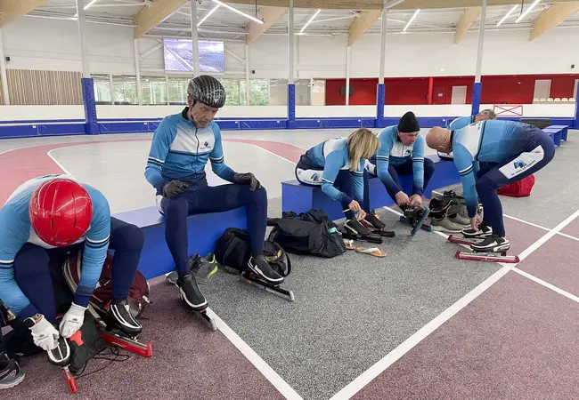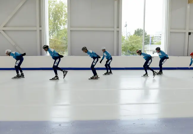 Tot zo ver het ijs. Uiteraard zijn de nieuwe kleedkamers van De Vliet, alle gevestigd op de begane grond, nog maagdelijk fris. Er zijn bescheiden tribunes aangebracht, zowel beneden als boven. In het ijs van de langebaan liggen lussen voor tijdwaarneming, zodat schaatsers via MyLaps hun rondetijden kunnen terugzien. Op de begane grond is naast de ijspiste een ruimte ingericht voor warming-up en krachttraining, inclusief een grote spiegel voor de ballettraining van kunstrijders. Op de eerste verdieping, waar langebaners het ijs op stappen, zijn naast een reeks bankjes ook nieuwe lockers neergezet voor het opbergen van persoonlijke spullen. Daar komen straks nog spinningfietsen te staan, waar schaatsers kunnen in- en uitfietsen. Van Vliet: “We doen het stapje voor stapje.”