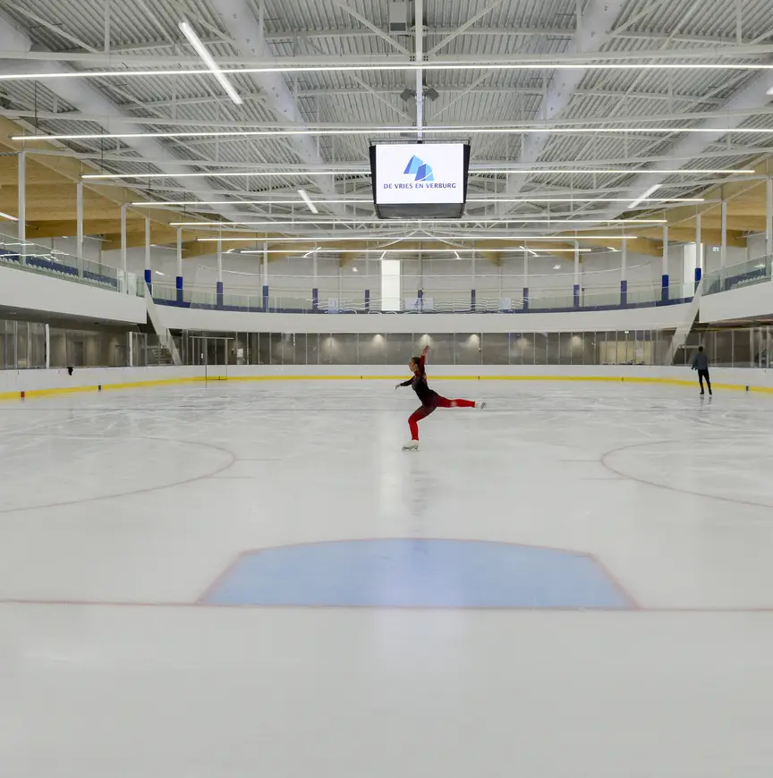 Eind maart sloot de Ton Menken-hal aan de Vondellaan zijn deuren, na 47 jaar trouwe dienst. Het historische gebouw is reeds gesneuveld onder de slopershamer. Op de drassige bodem langs rivier de Vliet is, gestut met duizend heipalen, een accommodatie neergezet die weer veertig jaar mee kan. Arts: “Hier ligt het fundament voor een gezonde toekomst van het schaatsen in Leiden en omgeving. Ik hoop en verwacht dat hier nog veel meer mensen plezier beleven aan de schaatssport, vooral ook de jeugd. In de oude hal trokken we 100.000 bezoekers per jaar. We begroten hier op 120.000, maar ik heb goede hoop dat we groeien naar 140.000.”