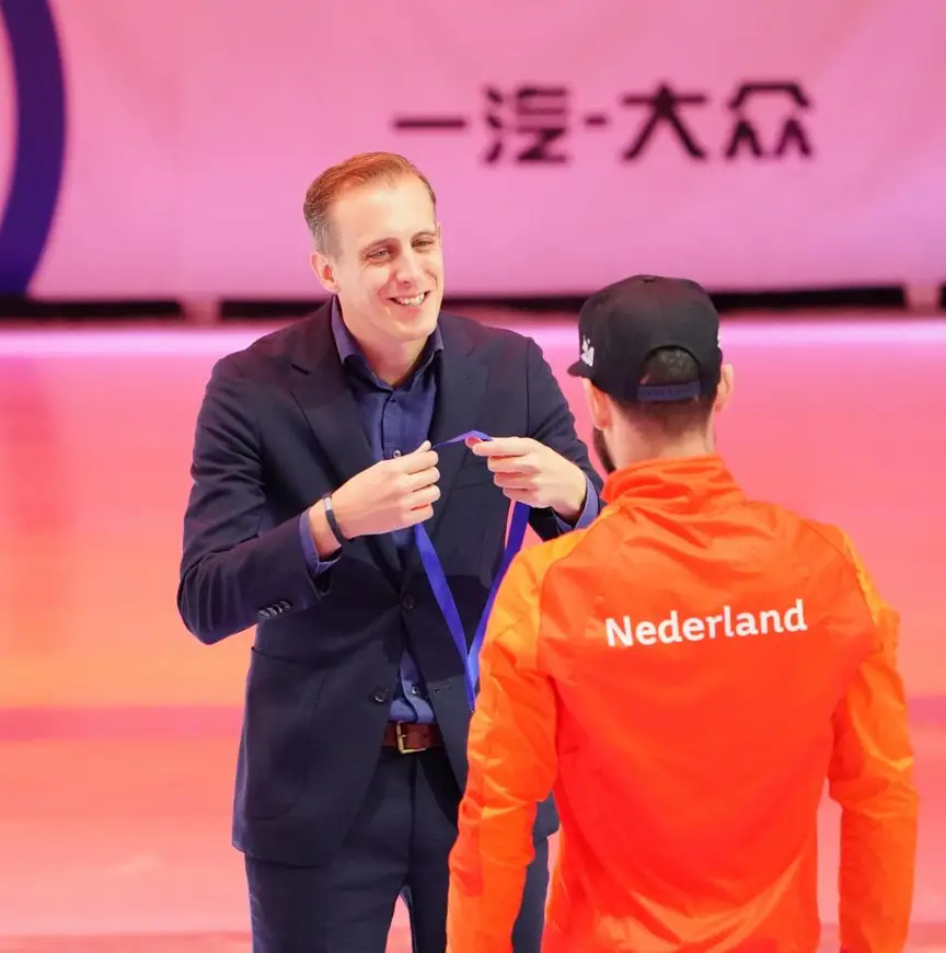 Cees Juffermans (boven op de foto als toernooidirecteur van het WK in 2017): “Je kunt nu de learnings meenemen van vorige keer. Het wereldkampioenschap in 2017 was een onwijs spektakel. Iedereen, inclusief ikzelf, was toen overdonderd van hoe mooi en hoe groot het was, en hoeveel enthousiasme het losmaakte. De productie nu is net weer een beetje beter dan destijds. De sport is opnieuw wat verder doorontwikkeld, de Nederlandse shorttrackers doen het in de breedte beter.