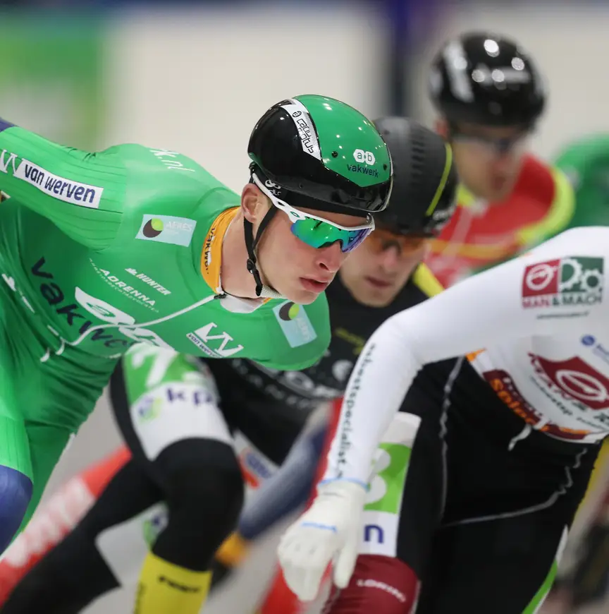 Hoekstra wil ook best een kritisch noot kraken. Zonder rancune of boosheid, haast hij zich te zeggen. ’’Want ik vind rijden op Flevonice geweldig, geniet van die wedstrijden en vind het prachtig dat we in Nederland ook buiten het reguliere kunstijs een andere race kunnen rijden. Maar ik wil wel opmerken dat we in het marathonschaatsen heel veel aandacht aan veiligheid geven. Helmen, snijvaste pakken; allemaal prima. Maar dan wel een heel peloton een baan op sturen waar geen machine overheen kan, zodat het ijs totaal stroef is en zo hard als de gewone weg, en dat ook nog eens nagenoeg zonder belichting; dat kan dan eigenlijk niet. Kijk wat er met Jasper van Mierle gebeurd is. Nekwervelbreuk en zware hersenschudding. Dat zit gewoon in de categorie Christijn Groeneveld en Martin van de Pol. Als dat op kunstijs gebeurt, gaat alles los. Nu hoor ik niets.’’