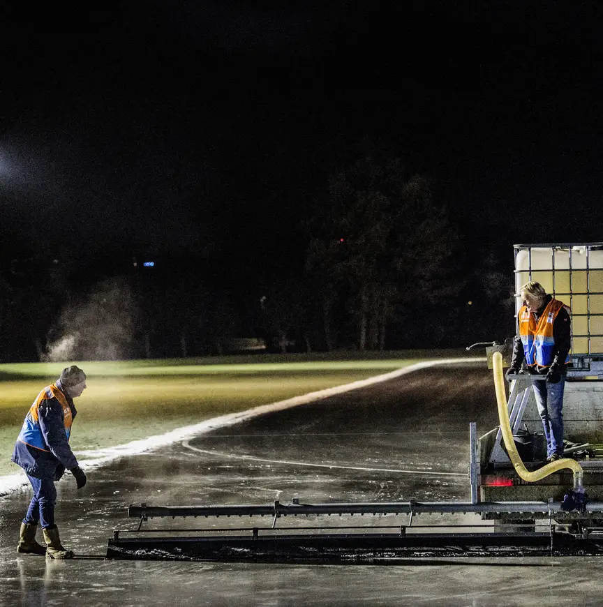 Dat het warmer wordt, daar laten de ijsclubs door het hele land zich niet door uit het veld slaan. Korte vorstperiodes moeten sneller worden benut, kennis moet zoveel mogelijk worden gedeeld en de politiek moet actief betrokken blijven. En natuurlijk, die kans wordt kleiner, maar dat motiveert alleen maar om niets aan het toeval over te laten. “Het belangrijkste advies is: zorg dat je altijd klaar voor bent”, besluit Timmerman. “En dan zit er vast wel eens een jaar tussen dat je het voor niks hebt gedaan. Aan de andere kant: als je het een keer een jaar niet hebt gedaan en je bent te laat, dan is dat rotter. Dan sla je jezelf ook voor de kop.”