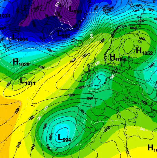 De koudste bovenluchten bevinden zich zoals gezegd meer boven het noordoosten van Europa. En juist die bovenluchtkou met -10 tot -15 graden op 1500 meter is nodig om het ook op leefniveau koud te laten zijn met overdag temperaturen van bijvoorbeeld -3 of -5 graden. Zo ver gaat het echter niet komen bij ons.