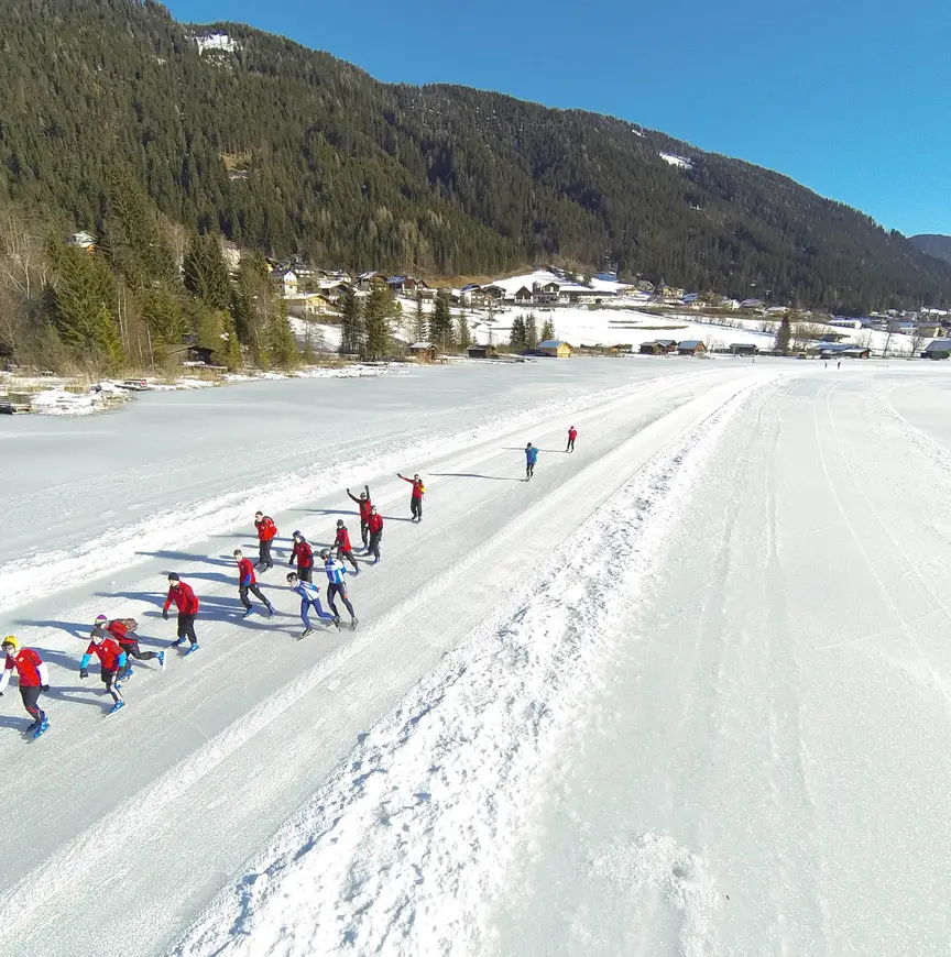 Vandaag kan iedereen gebruik maken van het parcours van vier kilometer om de eerste meters te maken op het Oostenrijkse meer. Het team van ijsmeester Jank gaat verder met het prepareren van het 12,5 kilometer lange parcours, zodat er morgen een zo mooi mogelijke baan ligt.