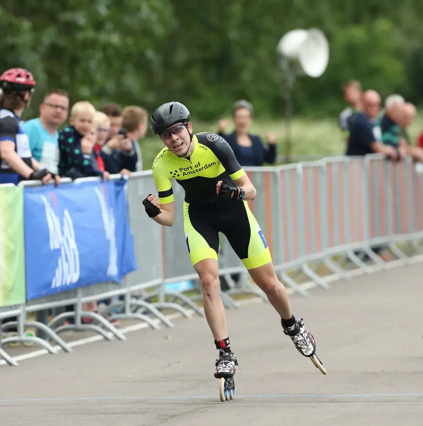 Van Trierum niet. De student software-engineering straalde van oor tot oor. Niet gek, vond hij, na alle tegenslag van de afgelopen maanden. ’’Na die valpartij op de fiets ben ik nooit meer op mijn niveau gekomen, bleef de hele winter kwakkelen. Uiteindelijk heb ik wat rust genomen en nu pak ik de boel weer op. Dat gaat lekker. Ik voelde in de trainingen al dat ik weer sterker wordt, ook in de inlinetrainingen met de mannen van de A-ploeg.’’