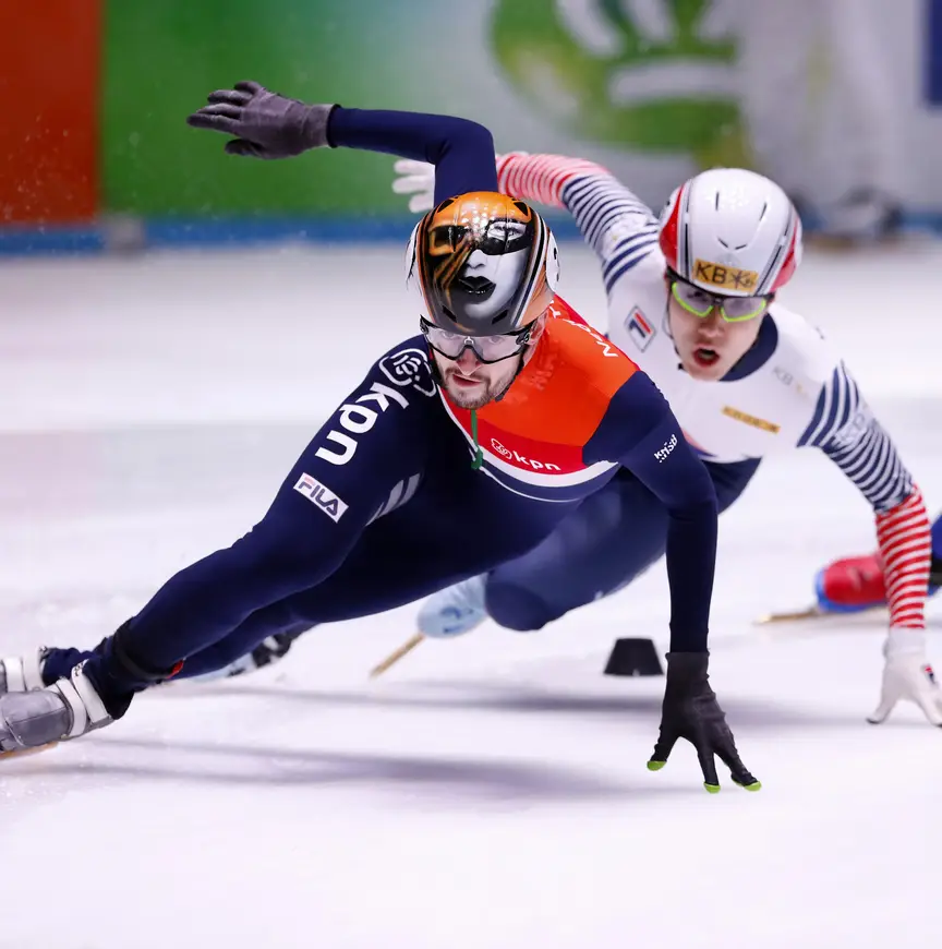 Een dag later was het in de finale nog spannender. “Dit is shorttrack. Je kunt veel op de relay trainen, en dat doen we ook, maar in de praktijk loopt een wedstrijd toch elke weer anders. Het komt altijd op improviseren aan. En daar zijn wij erg goed in.”