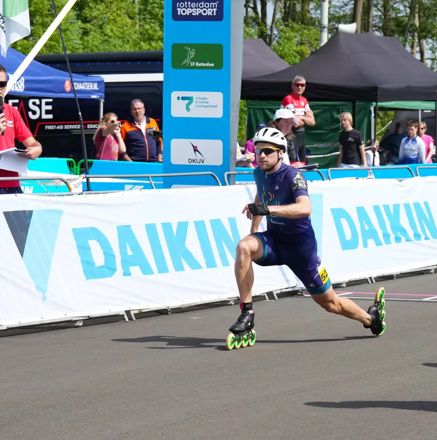 Het was buiten de liefhebber pur sang gerekend die kennelijk al die tijd in hem huisde. Want wie reed er de voorbije dagen heel verdienstelijk mee op het Daikin NK Inline Baan & Weg, met nog altijd dezelfde wieltjes als destijds, maar met zoveel meer lol in het spelletje dan hij misschien wel ooit had beleefd? Wessel Schilders. 32 jaar intussen, bijna afgestudeerd aan de Technische Universiteit van Delft, afgetraind tot en met, zonder veel ritme of wedstrijdkilometers, en fanatiek als de hel.