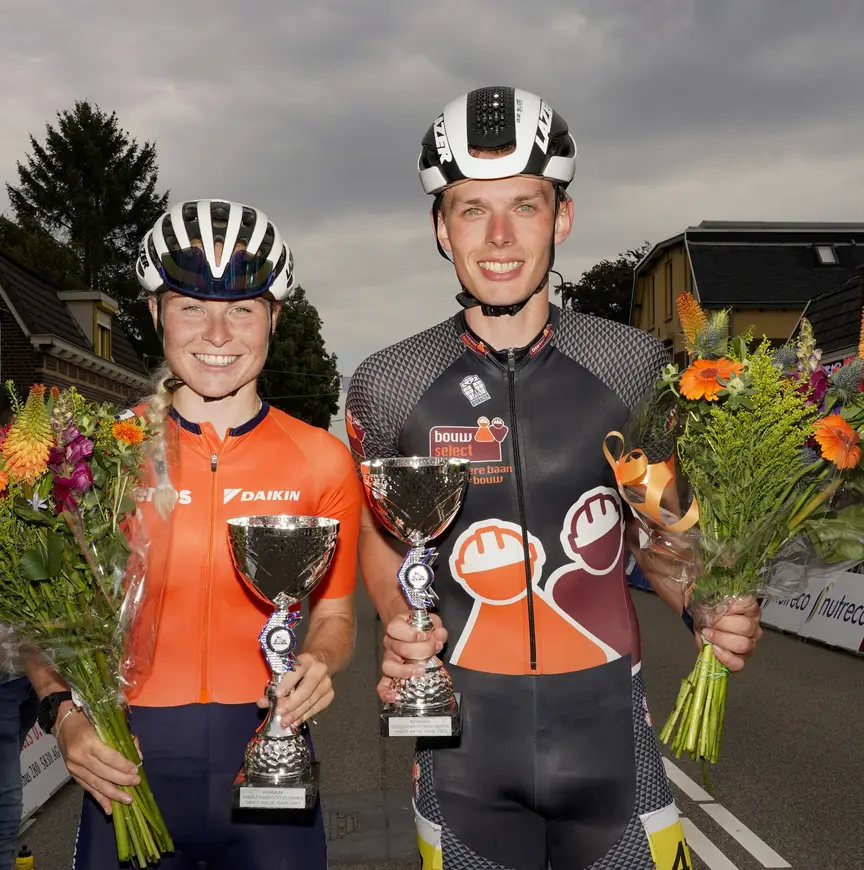 "Hartstikke leuk dat ik Marijke lang uit de wind heb gehouden, of dat we zo nu en dan kop over kop konden rijden. Alleen, we hebben geen koers gemaakt. Op een gegeven moment dacht ik even nu kan ik wel als een gek gaan lopen jassen om het gat naar Remon (de winnaar, red.) te dichten, maar dat lukt ook niet een, twee, drie. Nee, dit was niets. Ik zou trots zijn geweest als ik een goede wedstrijd had kunnen rijden met een veld waarin de mannen van Reggeborgh en Jumbo-Visma vertegenwoordigd zouden zijn", besloot de nummer twee in de uitslag. Bas Noorloos werd de nummer 3 bij de mannen, voor de volledigheid van een uitslag die er niet echt toe deed.