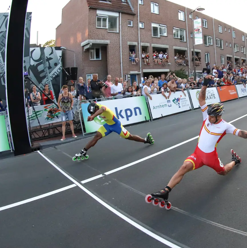 In de finale namen Spanjaard Ioseba Fernandez en Colombiaan Edwin Estrada het tegen elkaar op. De finish kwamen ze op het blote oog nagenoeg gelijk over, maar de klok sprak: met iets meer dan een honderdste verschil viel het de goede kant op voor Fernandez. Hij vierde de wereldtitel met zijn gezin langs de baan. Het zilver was voor Estrada. In de halve finale verbrak Fernandez het wereldrecord op de weg, hij noteerde 9,684.