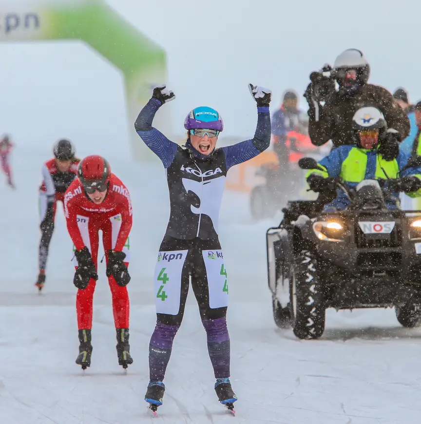 De vrouwen hadden het best pittig op het Runn-meer bij Falun. Er werd wel de aanval gezocht, maar het waren uiteindelijk zes sterke dames die elkaar vonden. Dat Spigt daarbij zat, wekte eigenlijk geen verbazing. Ze is de ongekroonde koningin van het natuurijs en maakt dat zowel in Oostenrijk als in Zweden steeds weer waar. Maar ook Van der Stelt, Jade van der Molen, Lisa van der Geest, Witte en Tessa Witteman maakten deel uit van die groep.