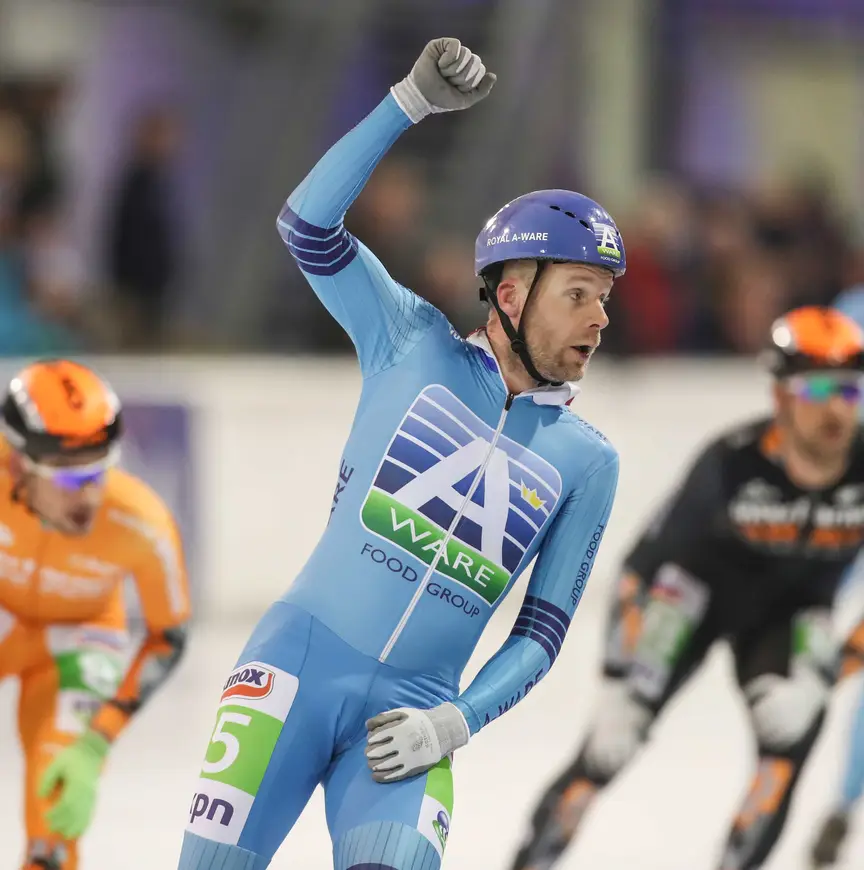 Stroetinga was blij met de terugkeer op het ijs van De Vries. "Zeker. Je ziet meteen dat hij samen met Schouten perfect de sprint voor me aantrekt." Een indrukwekkende sprint van Stroetinga, net als een week eerder in Amsterdam op het ijs van De Coolste Baan van Nederland. Nu het einde van het seizoen nadert, lijkt Stroetinga met de week sterker te worden. "Sinds de Weissensee ben ik aardig goed", erkent de man uit Waskemeer. "Ik voel dat al als ik op Thialf de snelle rondjes draai. Dan moet het in de sprint normaal gesproken ook lukken."