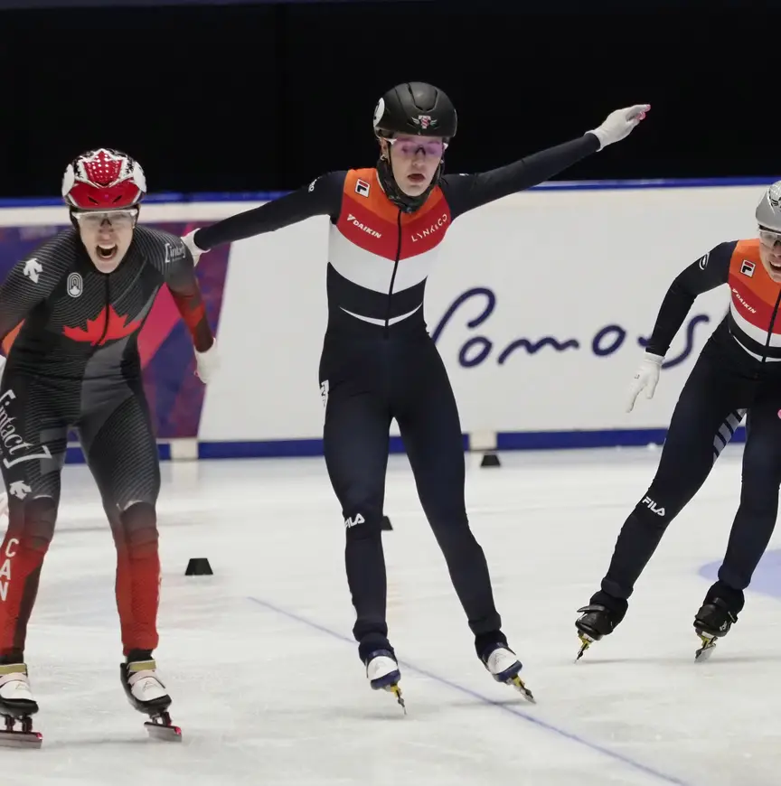 Van Oorschot: De bocht voordat we naar de koppositie snelden, had ik bewust al wat wijder opgezet om meer snelheid te maken dan de tegenstanders. Angel kwam op het goede moment in.” Evenals op het ijs vult Daleman haar teamgenote geruisloos aan: “En die Canadese maakte een misser, dus ik dacht: ‘Dit is onze kans en ik ga gewoon naar één.’ Dat meisje viel ook helemaal stil. Door het brons van Diede eerder op de dag dacht ik: ‘Ok, we gaan alles geven op de relay.’ Mijn 1000 meter was teleurstellend verlopen. Ik had ook nog een penalty gekregen. Zilver met het team, maakt me extra blij.”