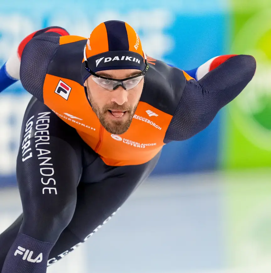Direct na de rit van Jordan Stolz, die slechts als negende eindigde, kwam Nuis in beeld. Hij klopte zichzelf op de borst en legde z’n vinger op de mond. Waar kwam dat vingertje vandaan? “Ik hou er niet van dat er woorden in een mond van een 18-jarige jongen worden gelegd. Stolz is een toptalent, maar die moet je lekker z’n ding laten doen. Hij gaf een interview aan de NOS en dan zetten ze er een kop boven met: ‘Jordan Stolz mikt op baanrecord’, maar dat heeft ie helemaal niet gezegd. Hij zei dat hij zichzelf 10% kans zou geven op een baanrecord. Zo’n kop is gewoon bullshit. Ik houd daar niet van.”