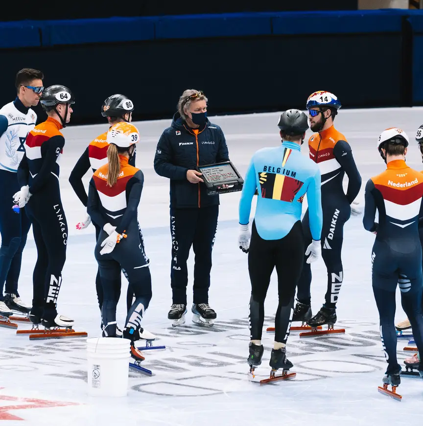 “We hebben meer goede atleten. Dat toonden de tijden op de training van afgelopen week aan. Als je een rondjes van 8,3 seconden rijdt, ben je echt geweldig. Dat deed Suus, en ook Xandra. Yara schaatste 8,4. Zij zei: ‘Als ik 8,4 in de training kan rijden, kan dat ook in een wedstrijd. Dat betekent als die anderen 8,6 rijden in de halve finale, dan moet ik er wat meer uit kunnen halen’. Dat heeft ze als geen ander bewezen. ‘Als ik mag starten, sta ik in een A-finale. Het vertrouwen bij die vrouwen is er en blijkbaar brengen ze elkaar tot een hoger niveau. Wanneer zij vertrouwen hebben, heeft een coach dat ook heel snel. Zo werkt dat. Goud, zilver, en drie keer brons. Sjinkie een keer vierde, voor Itzhak een zesde plek, dat zijn mooie resultaten. We mogen trots zijn.”