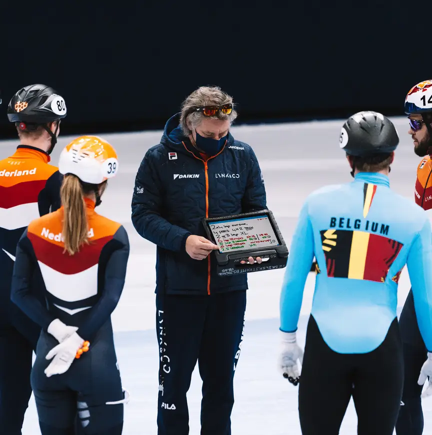 Zijn gezicht straalt. “Het is mooi en goed wat we zien gebeuren. Iedereen bij ons heeft iets om naar te kijken. Suzanne dient als voorbeeld voor Xandra. Ze heeft iets snels, ook in trainingen. Soms - een op de tien keer – is ze rapper dan Suus. Dat is startsignaal voor Suus om weer volle bak te gaan. Ze haalt er veel energie uit. Suzanne kan het ook hebben, want ze beseft tegenwoordig dat een goede Xandra haar beter maakt. Tegelijkertijd worden wij er als team onverslaanbaar door. Eigenlijk zijn ze concullega’s van elkaar. Individueel zijn ze tegenstanders, vier minuten later moeten ze samen het ijs op voor een relay. Dat is onderdeel van onze sport, steeds snel kunnen schakelen. Of Xandra beter kan worden dan Suus? Laten we het hopen. Twee heel goede vrouwen zijn ook weer handig voor onze relayteams.”
