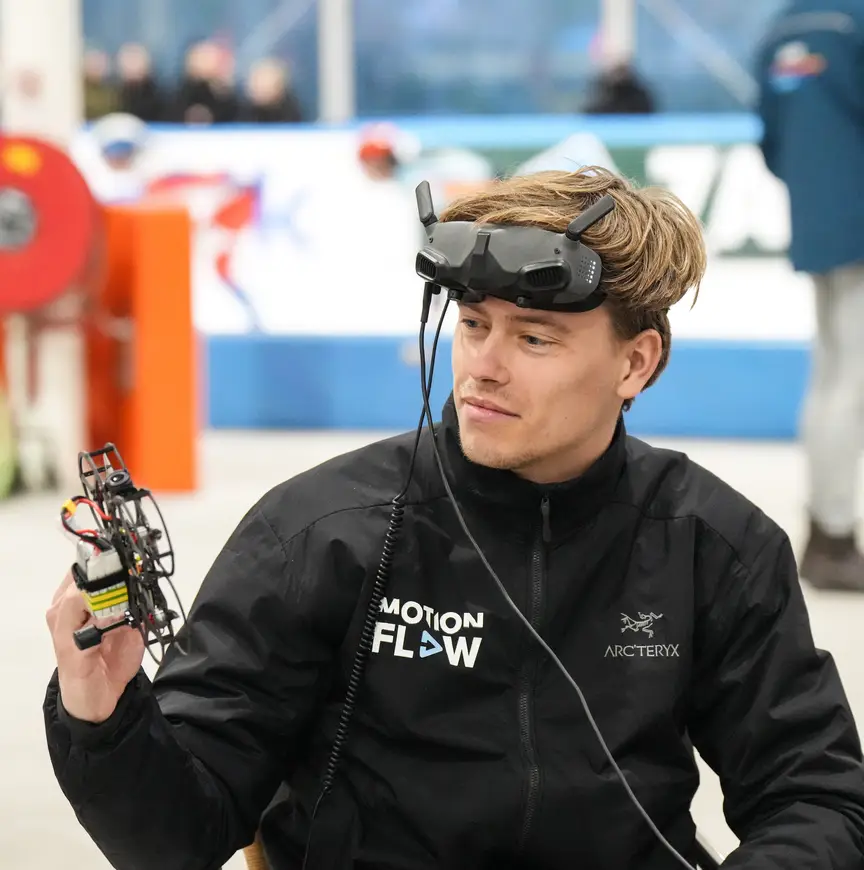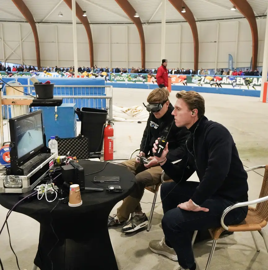 De 'livetest', zoals deze door de NOS gedoopt is, werd uitgevoerd door dronepiloot Jelmer Poelsma, met oud-schaatser Niek Deelstra als copiloot aan zijn zijde. Voor Poelsma, die normaal op festivals en bij bedrijven werkt, was het in beeld brengen van sport niet helemaal nieuw. "In oktober heb ik met Jumbo-Visma al gevlogen en naar aanleiding daarvan zijn we gevraagd om het hier te doen. Je komt superdicht op de actie en op deze manier draag je bij aan het beeld op tv."